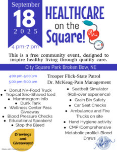 Community Health Fair in Broken Bow, NE where Fred and Pamela Buffett Cancer will be providing cancer education and screening services.