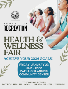Achieve your 2026 goals! Vendors will cover everything from finances to physical, social, and mental health. Stop by Papillion Landing Community Center Friday, January 23rd from 9:00am-12:00pm!