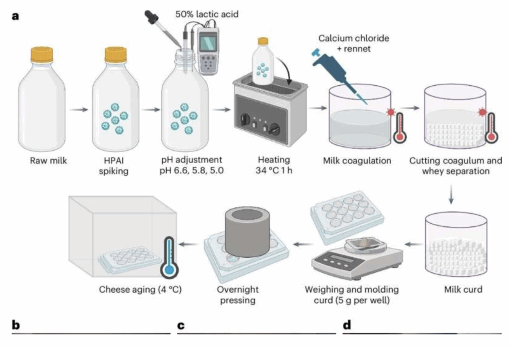 Raw milk cheese products contained infectious avian influenza virus when made with contaminated raw milk, creating potential health risks for consumers, according to a new study. The study is published in Nature Medicine.