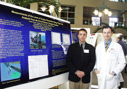 Verner shared his research experience Dec. 13 during the third annual Research Fair in the Durham Outpatient Center West Atrium. About 41 posters were on hand detailing faculty research projects involving cancer cells, Alzheimer’s disease, physicians views on nursing homes and barriers to appointment attendance.