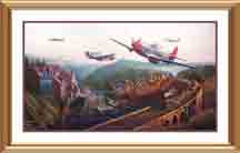 An artist’s rendention of the Tuskegee Airmen signature “Red Tail” aircraft.