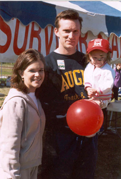 Michael and Heather Eversden with their daughter, Madelaine, a red cap survivor. |