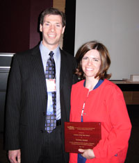 Kyle Meyer, associate dean of the School of Allied Health Professions, with Tammy Jones, who received SAHP’s Outstanding Teacher of the Year Award. |