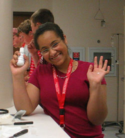 Miranda Wilbur gets frosting on the tip of her nose after smelling the frosting she mixed up in the pharmacy lab. |