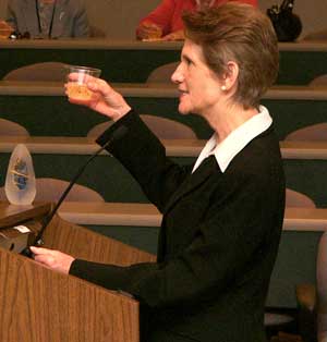 Virginia Tilden, D.N.Sc., dean of the College of Nursing, proposes a toast to celebrate the college’s 90th anniversary in October. |