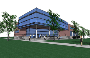 An artist’s rendering of the College of Public Health building, which UNMC seeks to place on 40th Street thanks to a gift from Omaha philanthropists Ruth and Bill Scott. |