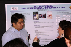 Matt Oxiles speaks with Connie Visovsky about his research. (Photos by Dan Brick) |