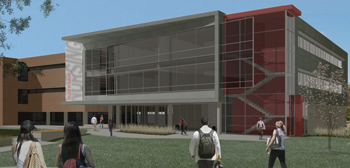 An artist’s rendering of the Center for College of Nursing Sciences, which will be constructed behind the College of Nursing building in Omaha. Ground will break today on the new facility, which will help the college face the nursing shortage in Nebraska. |
