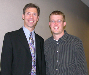 Kyle Meyer, Ph.D., associate dean for the School of Allied Health Professions, with Aaron Wenburg, a member of the SAHP PT Class of 2002 who works at Hastings Physical Therapy. |