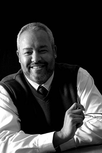 Rubens Pamies, M.D., and Victoria Maclin, M.D., are featured in the “Portraits of Power 2010” exhibit at the W.Dale Clark Library in downtown Omaha. The exhibit features images of local black leaders from various professions. (Photos by Herb Thompson) |