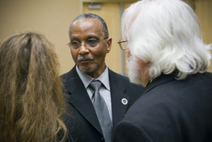 Gray speaks with Andrew Jameton, Ph.D., right, and another audience member after the city councilman delivered the his Martin Luther King Jr. Day address at UNMC. (Andrew E. Nelson, UNMC public Relations)