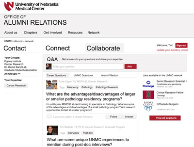 - I’m currently serving as the Alumni Relations chair for the Graduate Student Association. My main focus is to develop an online directory of UNMC alumni from all the colleges on campus. This directory will serve as a way for current students and alumni to reach out to other alumni in the UNMC network. We believe the UNMC alumni directory will open new doors for interprofessional collaboration, provide mentorship opportunities, improve career outcomes, and even help highlight the successes of numerous alumni. If you want to get involved, please let me know! Check out the mock-up website designs shown here.