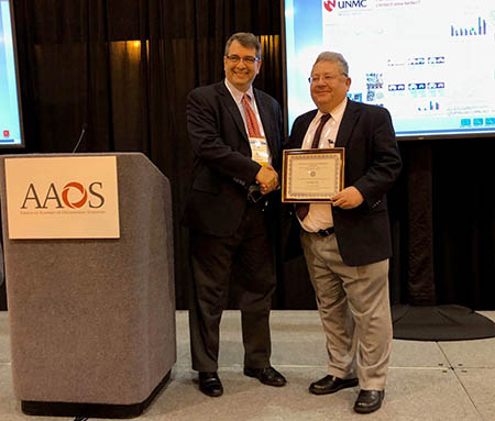 Dr. Haider receives the Adult Reconstructive Knee Poster Prize at the American Academy of Orthopaedic Surgeons Annual Meeting in March. |