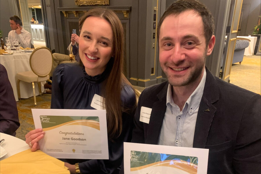 Jane Goodson, MD, and Jeremy Payne, MD, both of the UNMC Department of Anesthesiology, were inducted at the event.