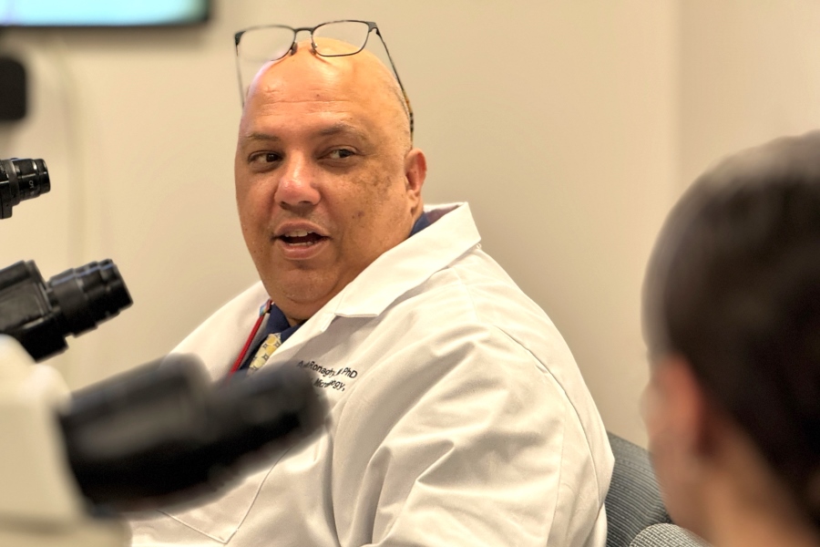 Arash Ronaghy, MD, PhD, who joined the department last year as an assistant professor, was driving his niece, Peya, a sophomore at Brownell Talbot in Omaha, to one of her games. While watching the game, he struck up a conversation with Dr. Kristi Gibbs, the principal of Brownell Talbot. When she found out that he was a pathologist, the conversation quickly turned to planning the student tours. Dr. Ronaghy saw this as an opportunity to increase the university’s engagement with high school students in the community to teach them about pathology at UNMC.