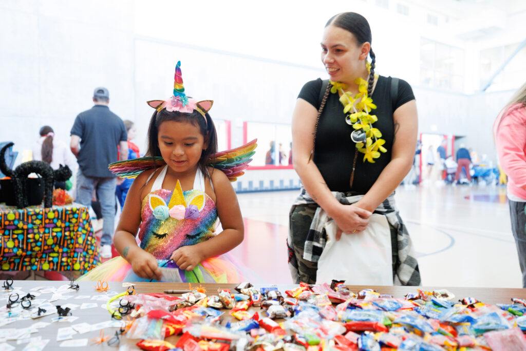 As Elianna and Adrian approached tables brimming with sweet treats and trinkets, Dad Fredy Mendoza offered reminders to say “thank you.”