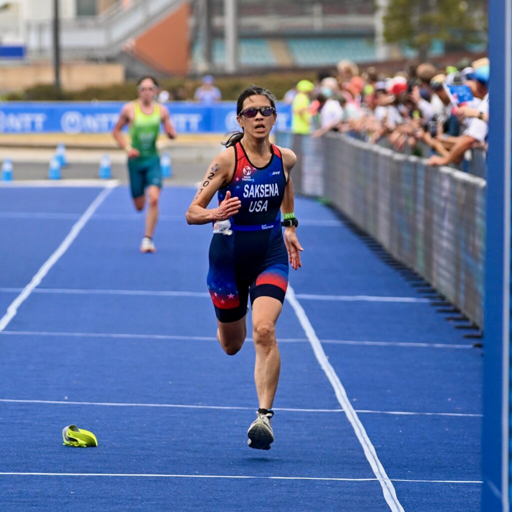 At USA Triathlon Multisport National Championships in 2024, which was held in Omaha, Dr. Saksena finished eighth for her age group in the Super Sprint Triathlon, and did well in her leg of the Triathlon Mixed Relay to qualify for 2025 Age Group Team USA.