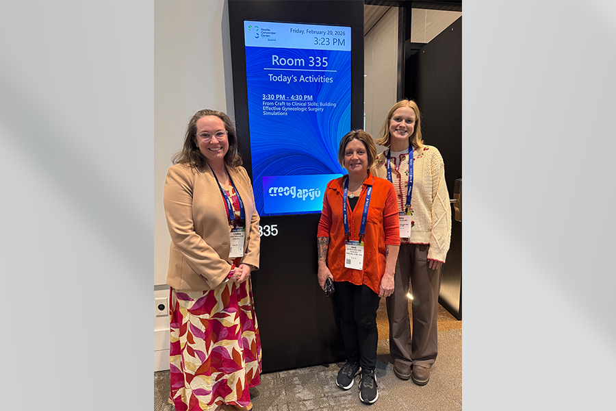 02/26/2026 Dr. Lindsey McAlarnen, Jami Monico, and Dr. Macy Thonen presented at the 2026 CREOG & APGO national conference with a discussion den session on simulation education, showcasing innovative and inexpensive approaches to creating task trainers. The session featured a bleeding model designed with a water pump, tubing, and a foam uterus to simulate realistic clinical scenarios. Attendees were given a kit and worksheet and invited to form small groups to design their own gynecologic simulation models. Participants eagerly collaborated on the activity, contributing to a packed room of highly engaged learners and a strong interest in accessible, low-cost simulation solutions.