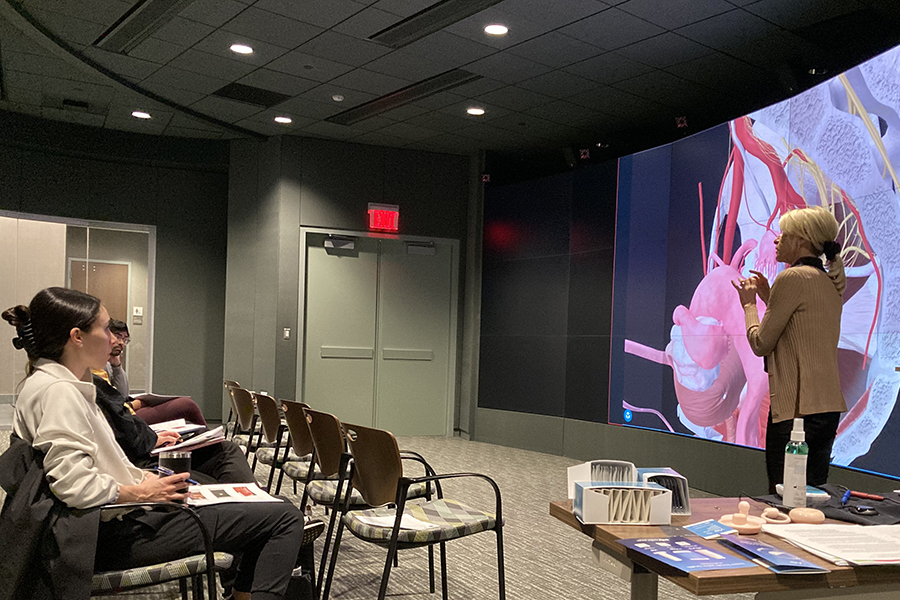 Jen Cera, women's health nurse practitioner, instructs students on female pelvic anatomy.