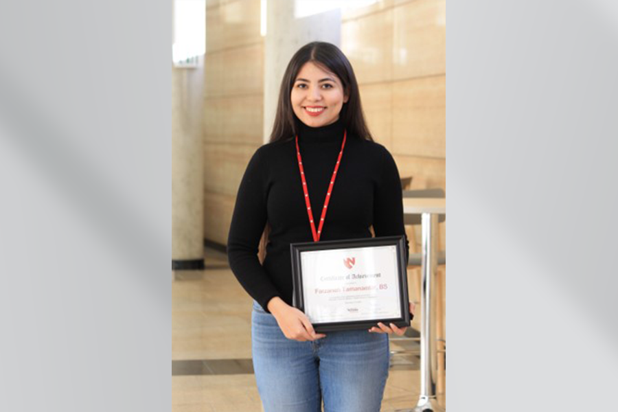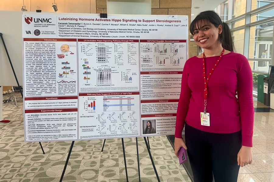 Farzaneh Tamanaeifar, PhD candidate, recipient of the Top Poster Award for Basic Science at the Nebraska Center for Women’s Health Research Symposium. November 2025.
