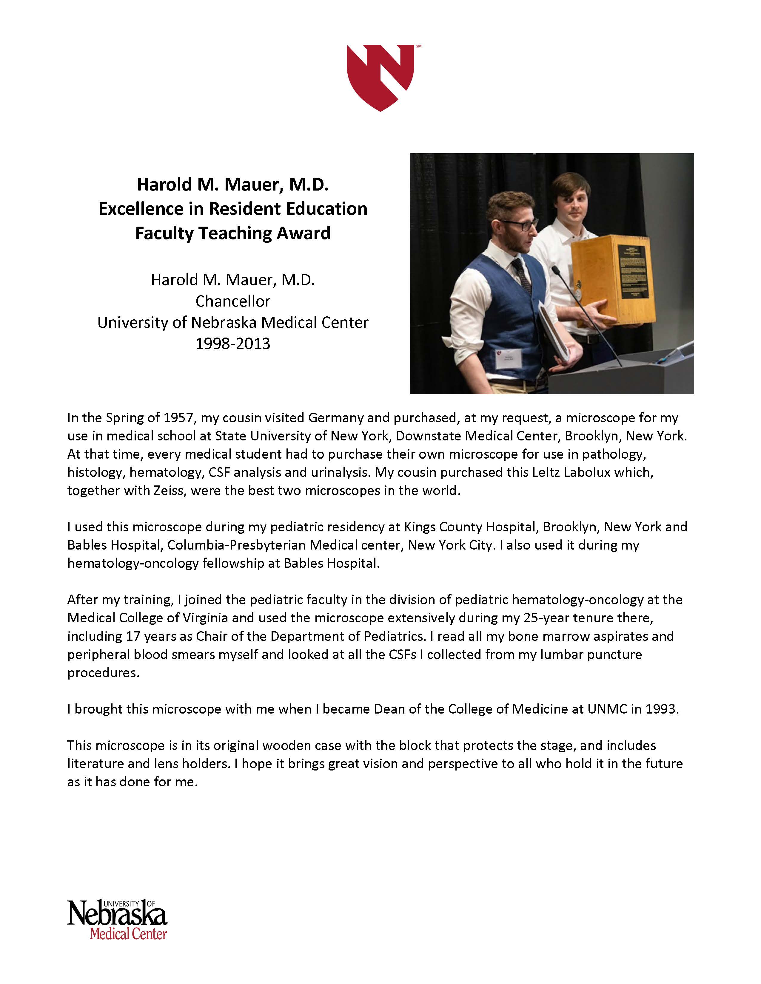 The James Newland Distinguished Pathology Educator Award recognizes a distinguished faculty member within the Department of Pathology and Microbiology that has demonstrated outstanding commitment to and excellence in preclinical, clinical, or graduate pathology education locally, regionally, and nationally.